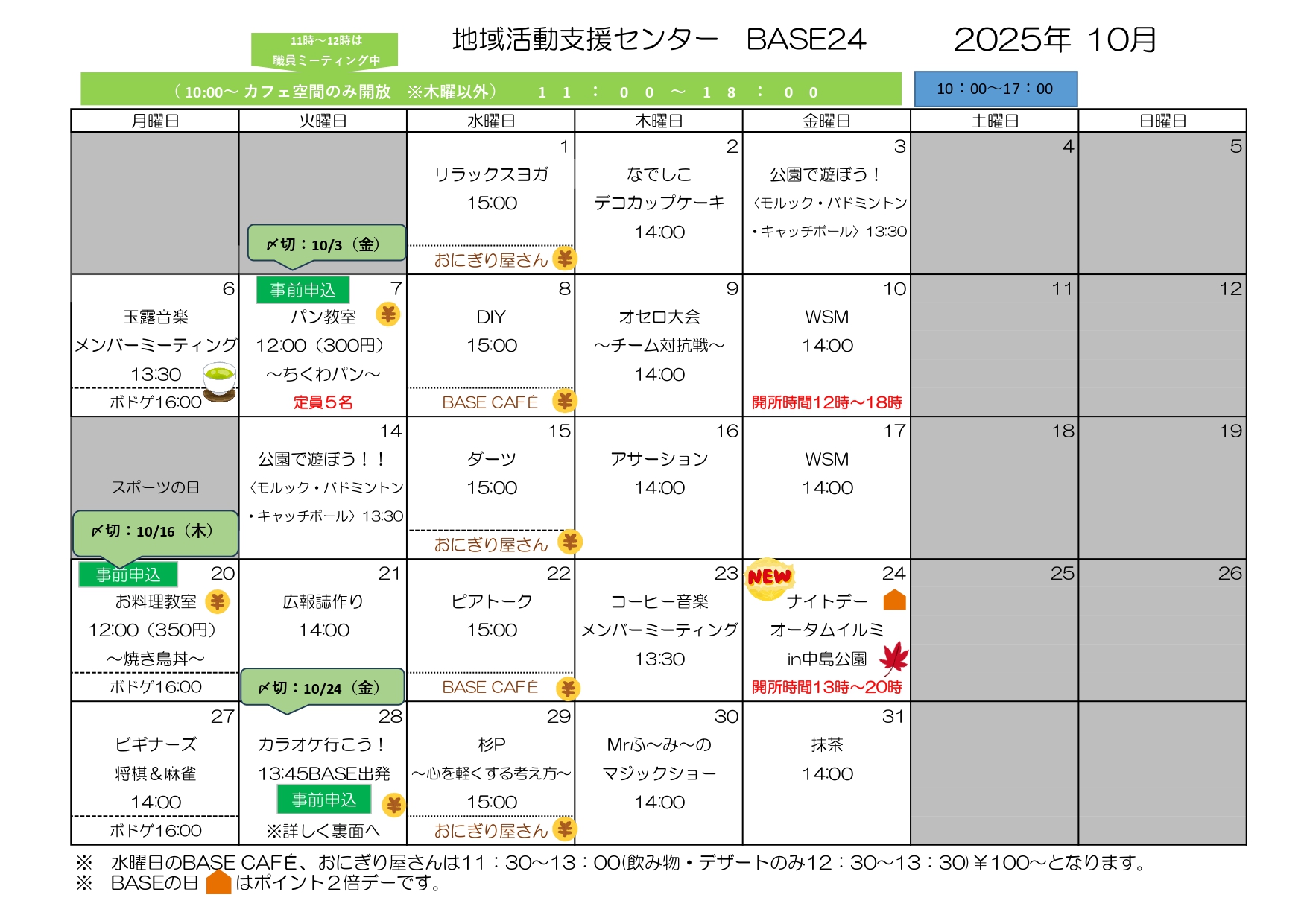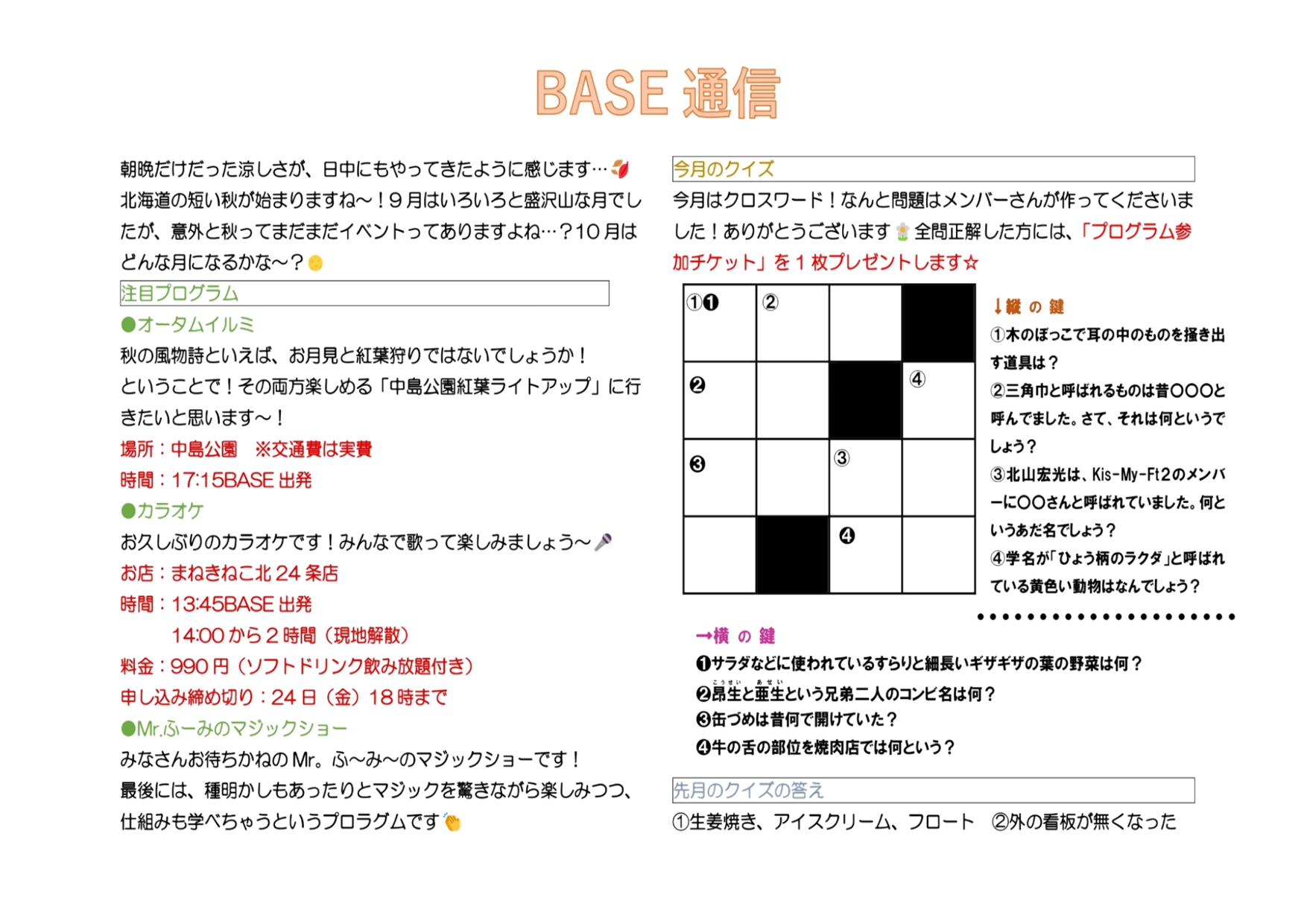 それでは、10月のプログラムをご紹介します⭐