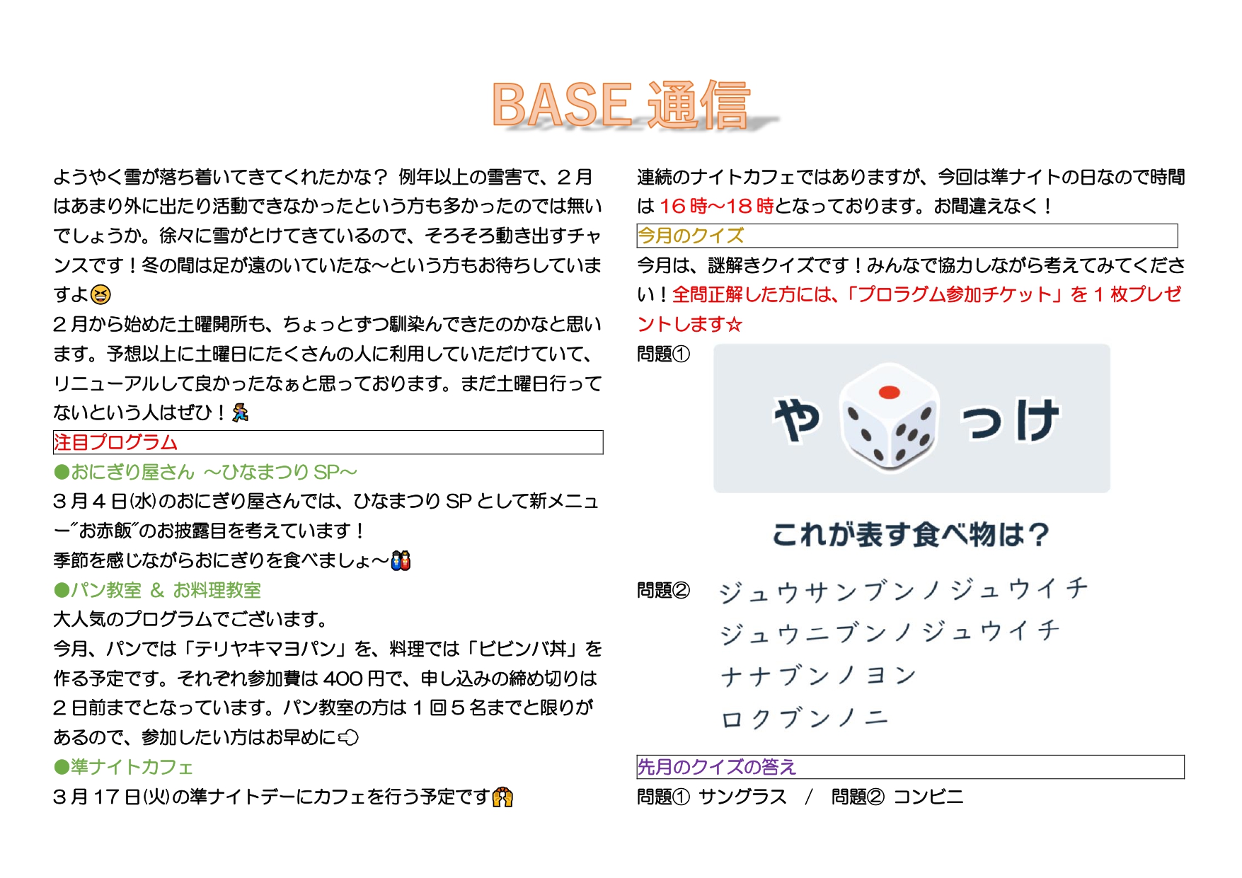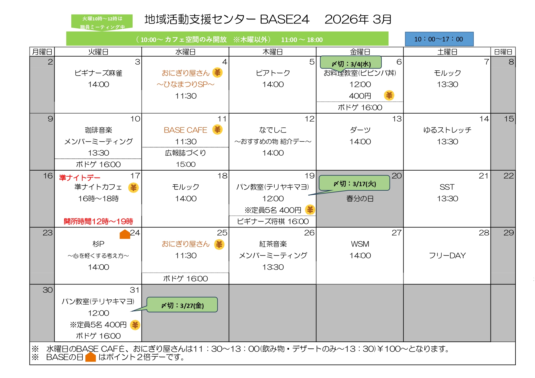 さてさて、3月のBASE24のプログラム予定をお知らせいたします。