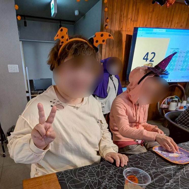 2025.11.05 プログラム「ハロウィンパーティ」を実施しました こんにちは、古河です! 先日末、プログラムとして“ハロウィンパーティ”を実施しました。 みなさん思い思いの”仮装”をして、とても盛り上がったようです^^ ビンゴ大会と、お菓子のつかみ取りも! 多くの利用者さんが集まってくれて、みなさん楽しく過ごせたようでよかったです◎ 次回はクリスマス…年末年始…と、年の瀬に向けていろいろなイベントが待っていますね。 風邪をひかないように、暖かくして、2025年もあと2か月、楽しみましょう! それではまた! « 前の記事へ